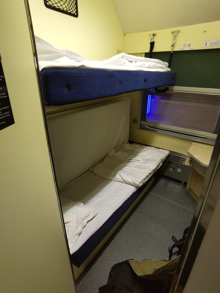 Oordoppen zijn nodig, want de trein is luid. Een oogmasker kan ook geen kwaad. De lampen kunnen uit, maar het bedieningspaneel voor de lampen niet geeft veel licht. Behalve dit is het donker en het rolgordijn blindeert totaal. Tip: laat de makkelijkste slaper op het onderste bed liggen. Daar zijn de trillingen van de trein het hardst te voelen.